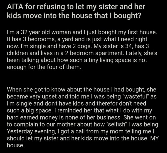 Aita For Refusing To Let My Sister And Her Kids Move Into The House That I Bought Lipstick Alley