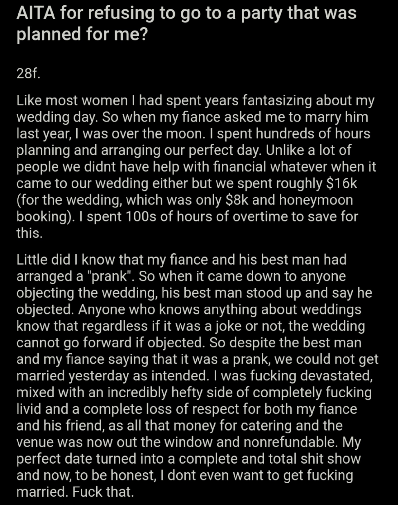 Am I The Asshole On Twitter Aita For Refusing To Go To A Party That Was Planned For Me Https T Co G5xd4ajbkv