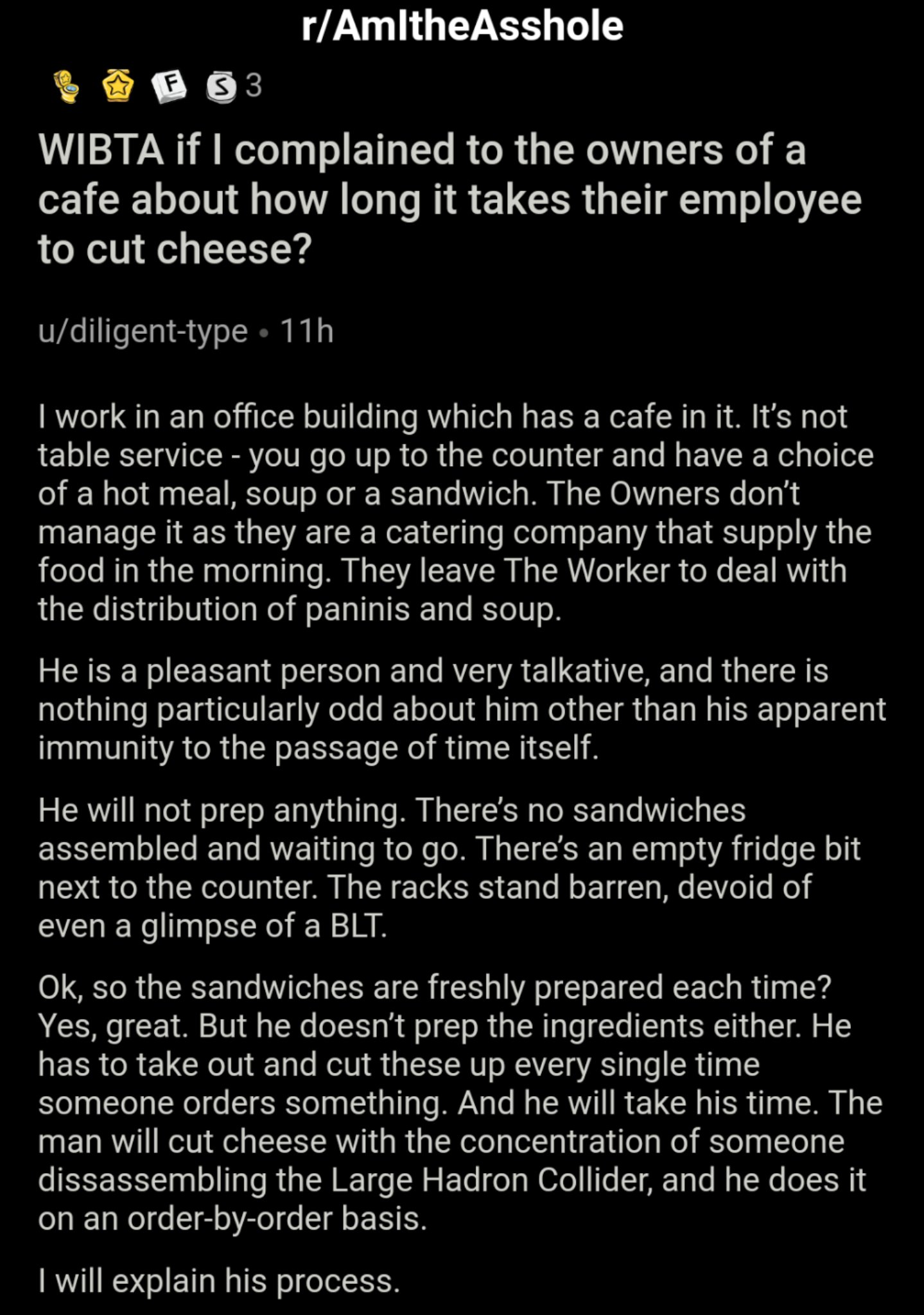 Am I The Asshole On Twitter Wibta If I Complained To The Owners Of A Cafe About How Long It Takes Their Employee To Cut Cheese Https T Co Hndpre4dkn Https T Co Efmuyoqafj