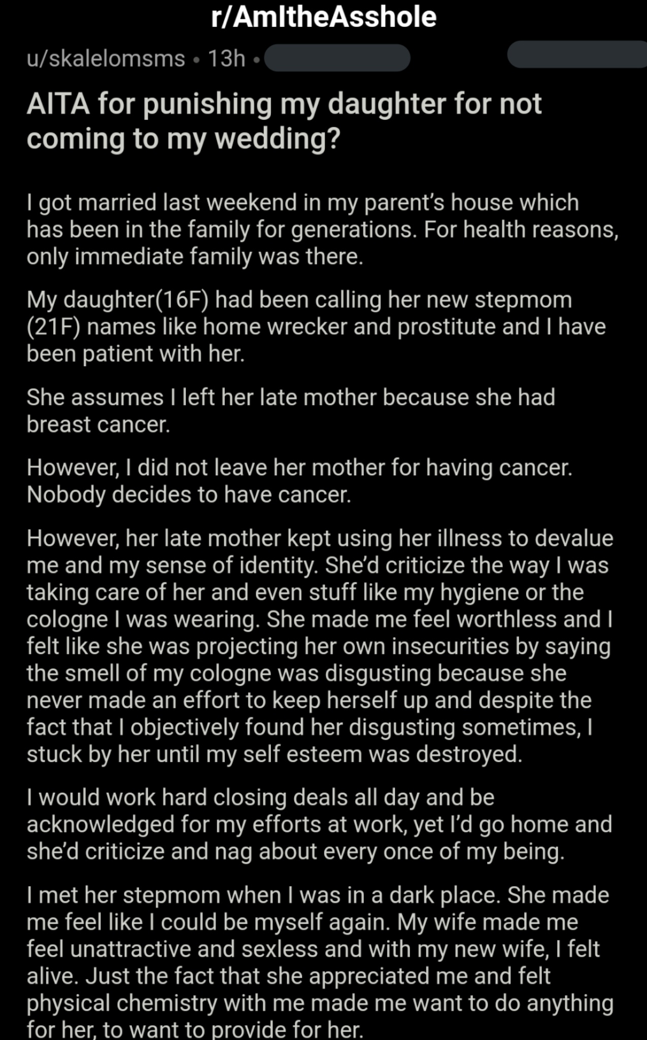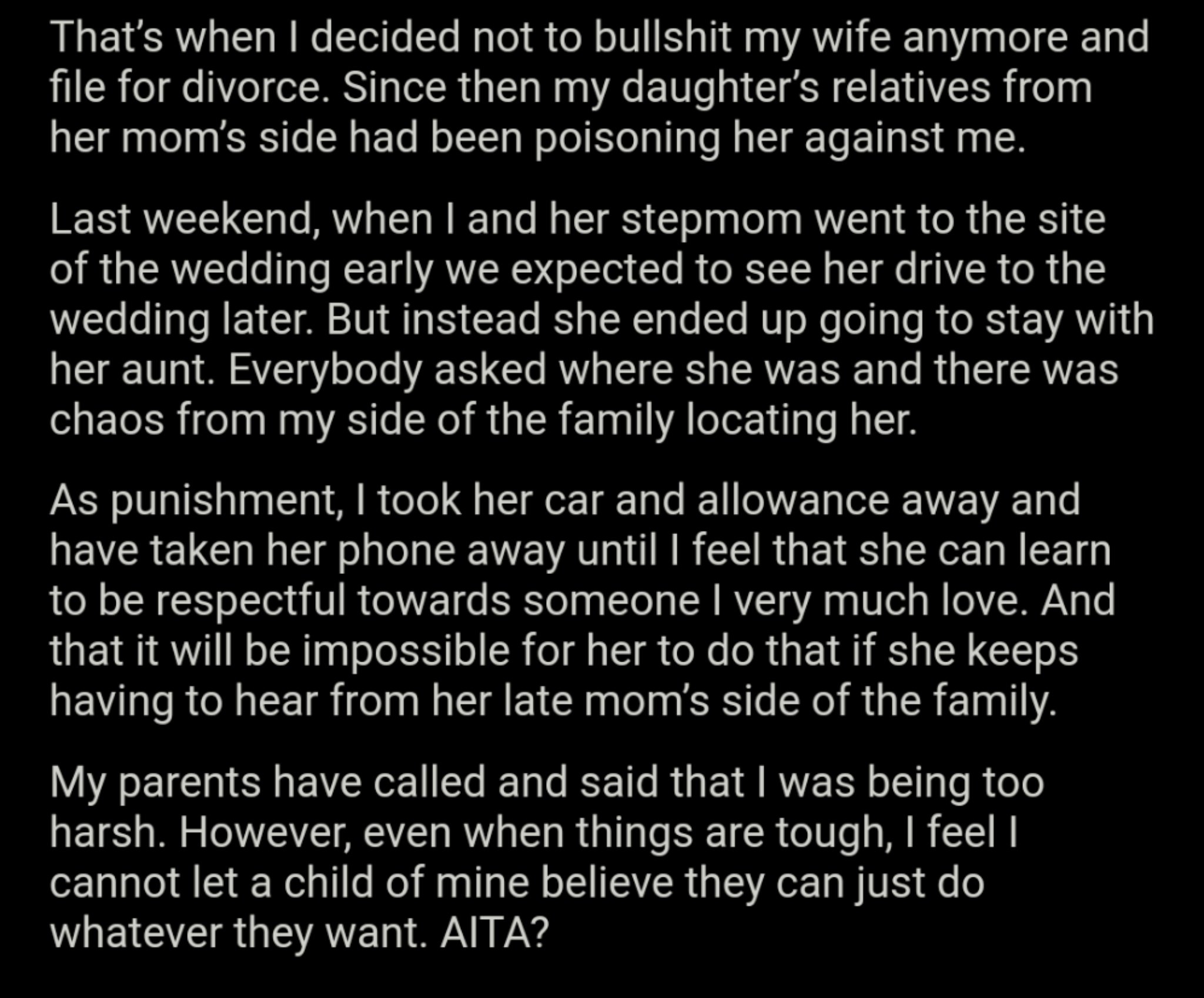 Am I The Asshole On Twitter Aita For Punishing My Daughter For Not Coming To My Wedding Https T Co Qs5rd9fc66