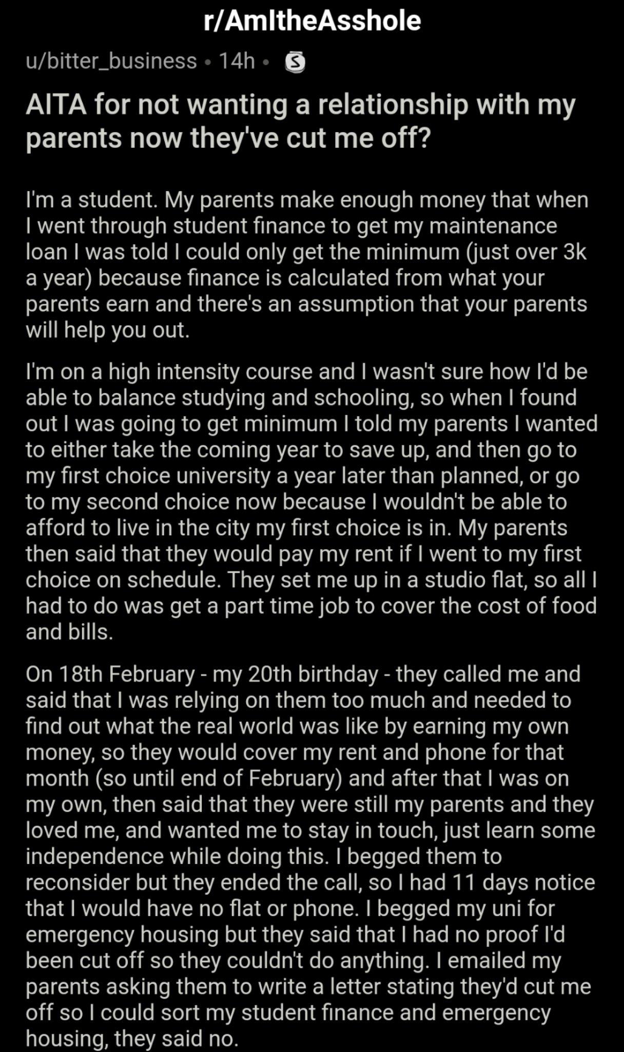 Am I The Asshole On Twitter Aita For Not Wanting A Relationship With My Parents Now They Ve Cut Me Off Https T Co F1wsc3edcn