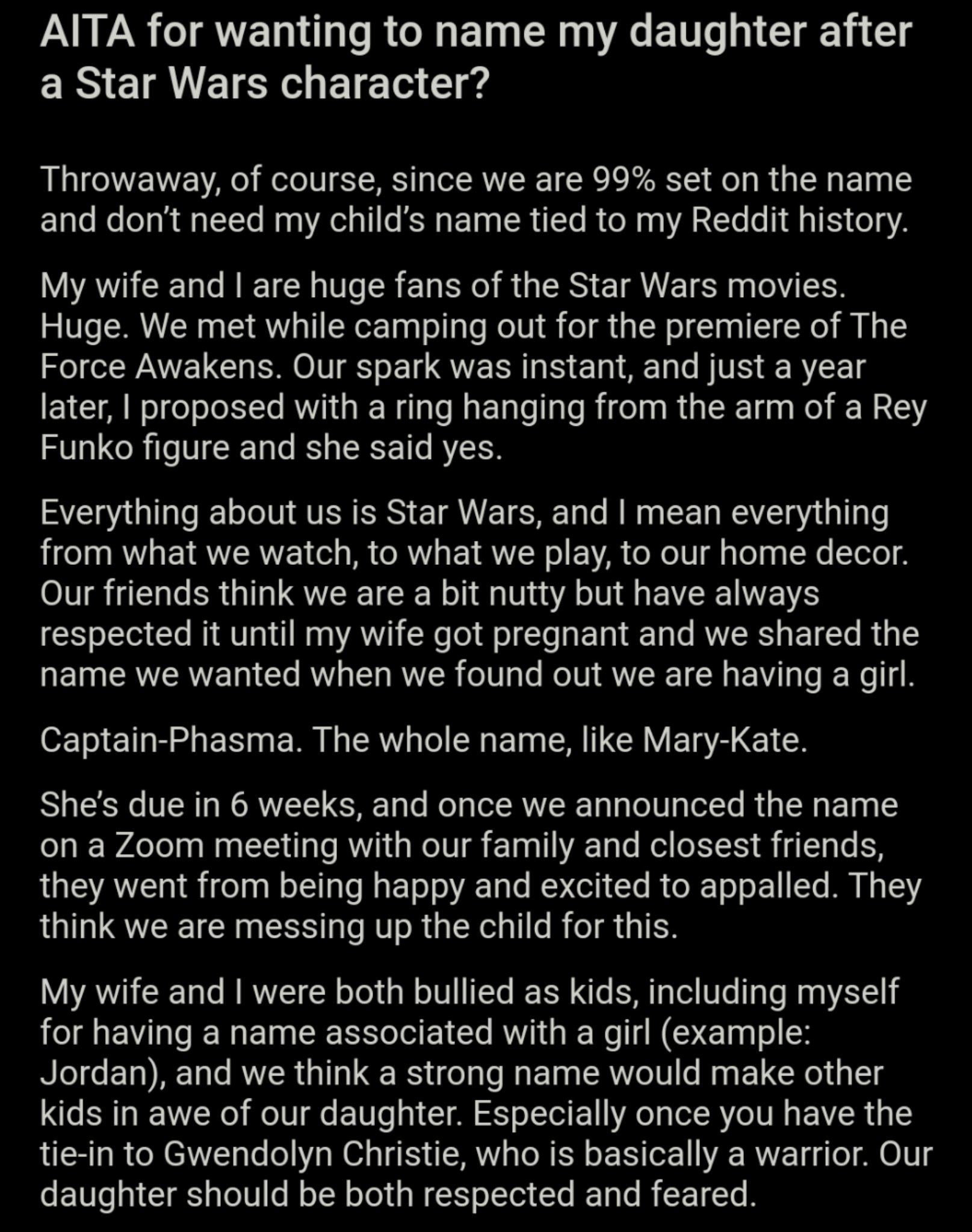 Am I The Asshole On Twitter Aita For Wanting To Name My Daughter After A Star Wars Character Https T Co 9vinuemxck