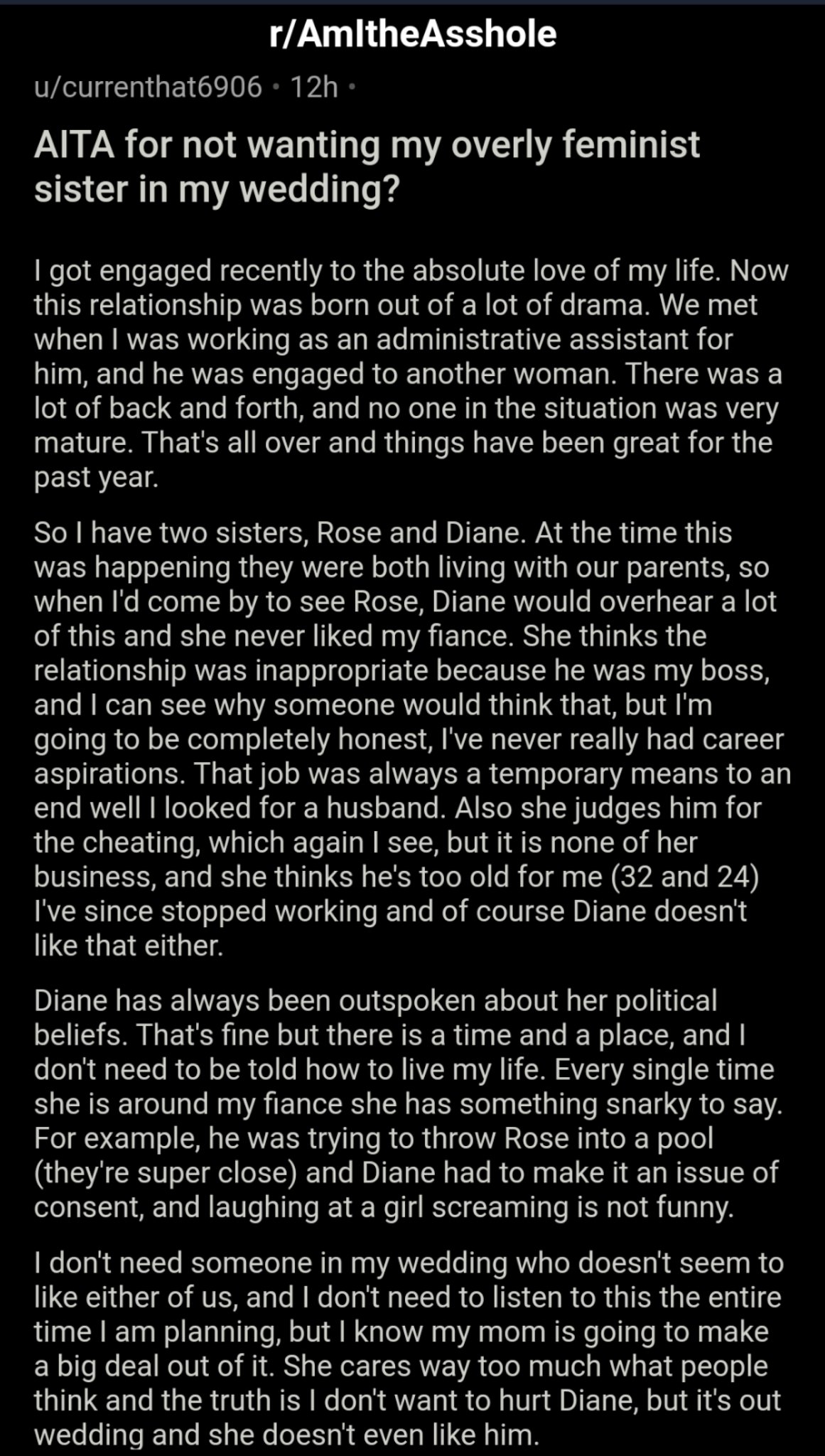 Am I The Asshole On Twitter Aita For Not Wanting My Overly Feminist Sister In My Wedding Https T Co Lmevl2qo3n
