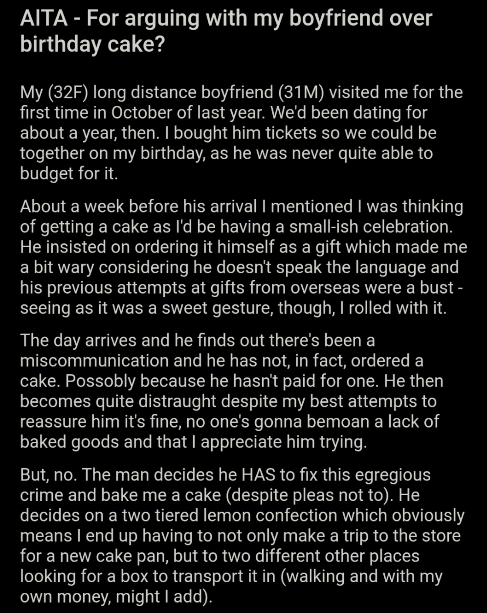 Am I The Asshole On Twitter Aita For Arguing With My Boyfriend Over Birthday Cake Https T Co Xlz5gam9xw
