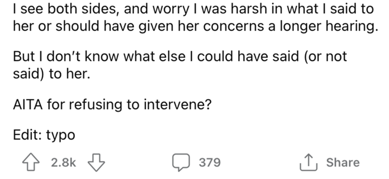 My name is Taylor also known as The Mommy Vegan. Im in the process of finding a way to discipline my assistant over this because we shouldnt be disclosing why we dont hire someone. The poster shared his situation on the Am I the A-hole.
