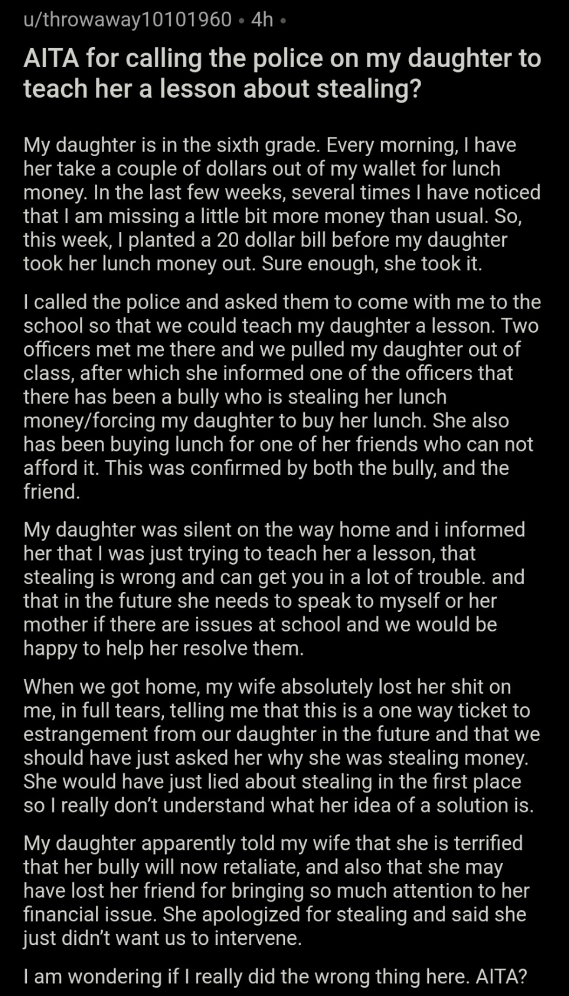 Am I The Asshole On Twitter Aita For Calling The Police On My Daughter To Teach Her A Lesson About Stealing Https T Co 4lnuh9accb