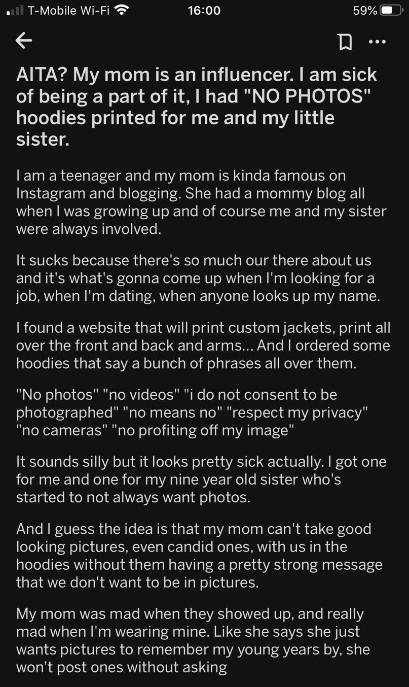 Mommy Blogger S Teenager Wears No Photos Sweatshirt To Be Excluded From Her Posts