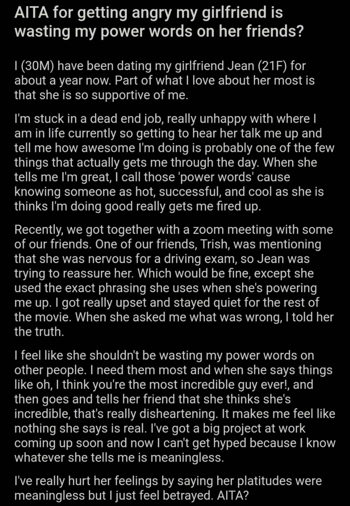 Am I The Asshole On Twitter Aita For Getting Angry My Girlfriend Is Wasting My Power Words On Her Friends Https T Co Pseleocn9l