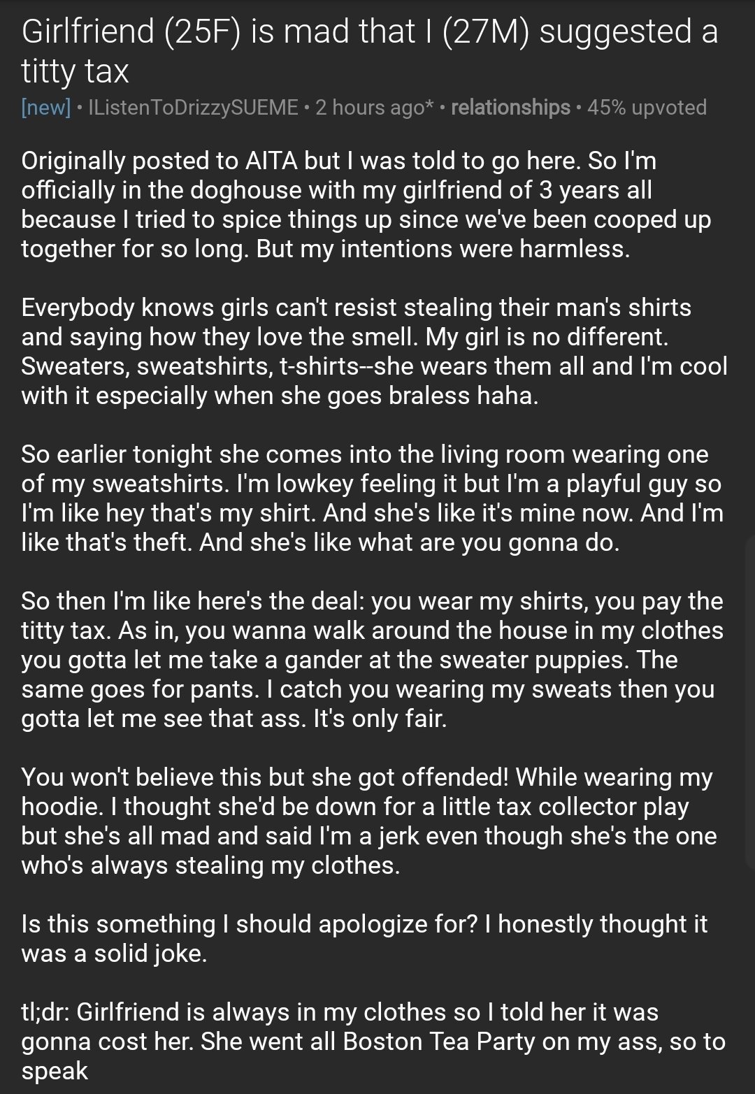 Relationships Txt On Twitter Girlfriend 25f Is Mad That I 27m Suggested A Titty Tax