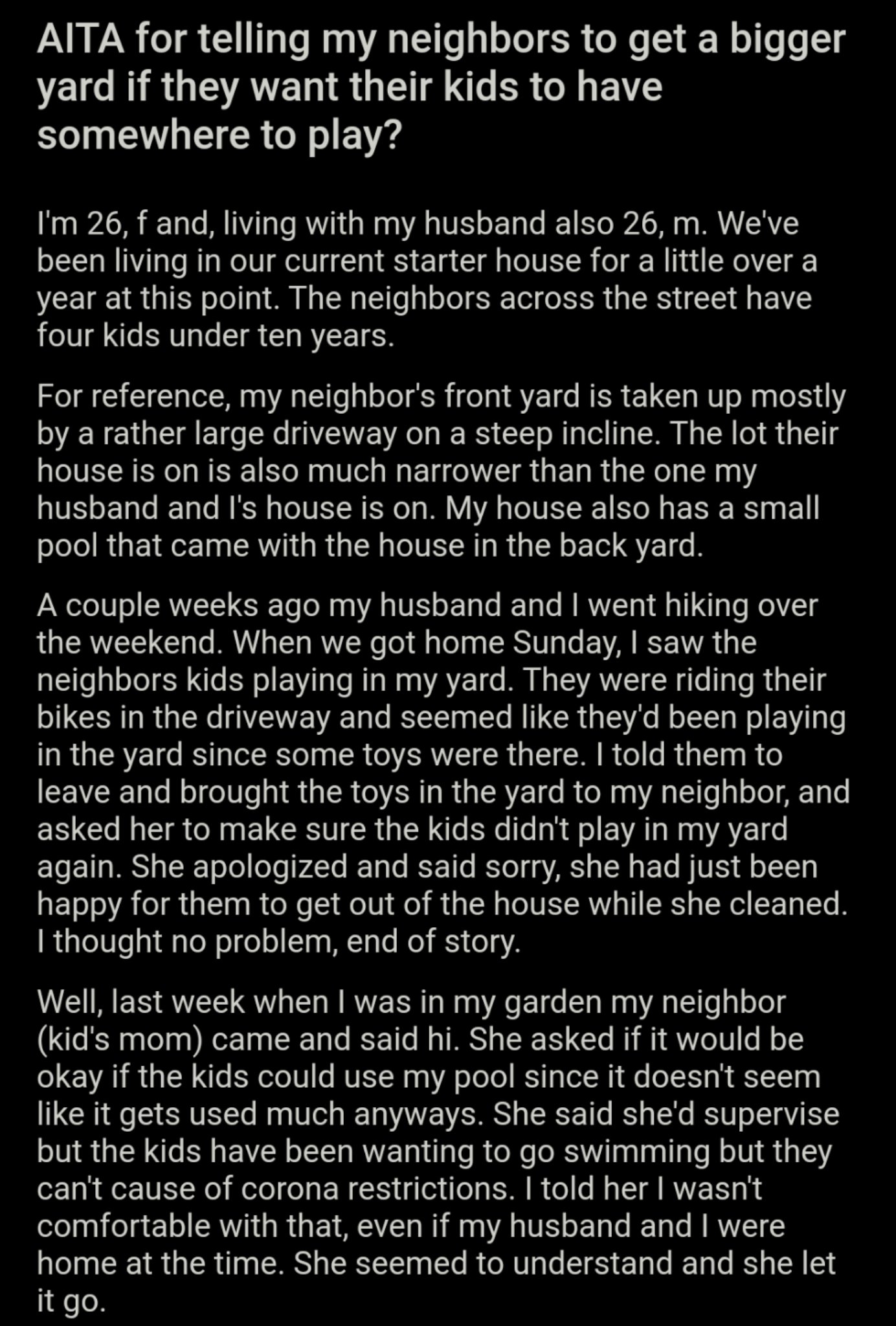 Am I The Asshole On Twitter Aita For Telling My Neighbors To Get A Bigger Yard If They Want Their Kids To Have Somewhere To Play Https T Co 8izlz6erzh Https T Co Qrhl4ysbok