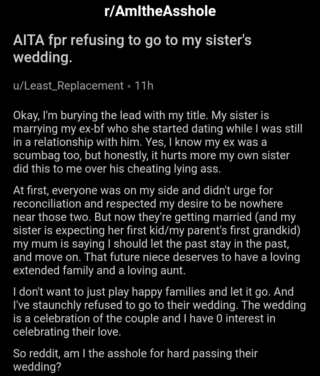 Am I The Asshole On Twitter Aita For Refusing To Go To My Sister S Wedding Https T Co Qqphdjednr