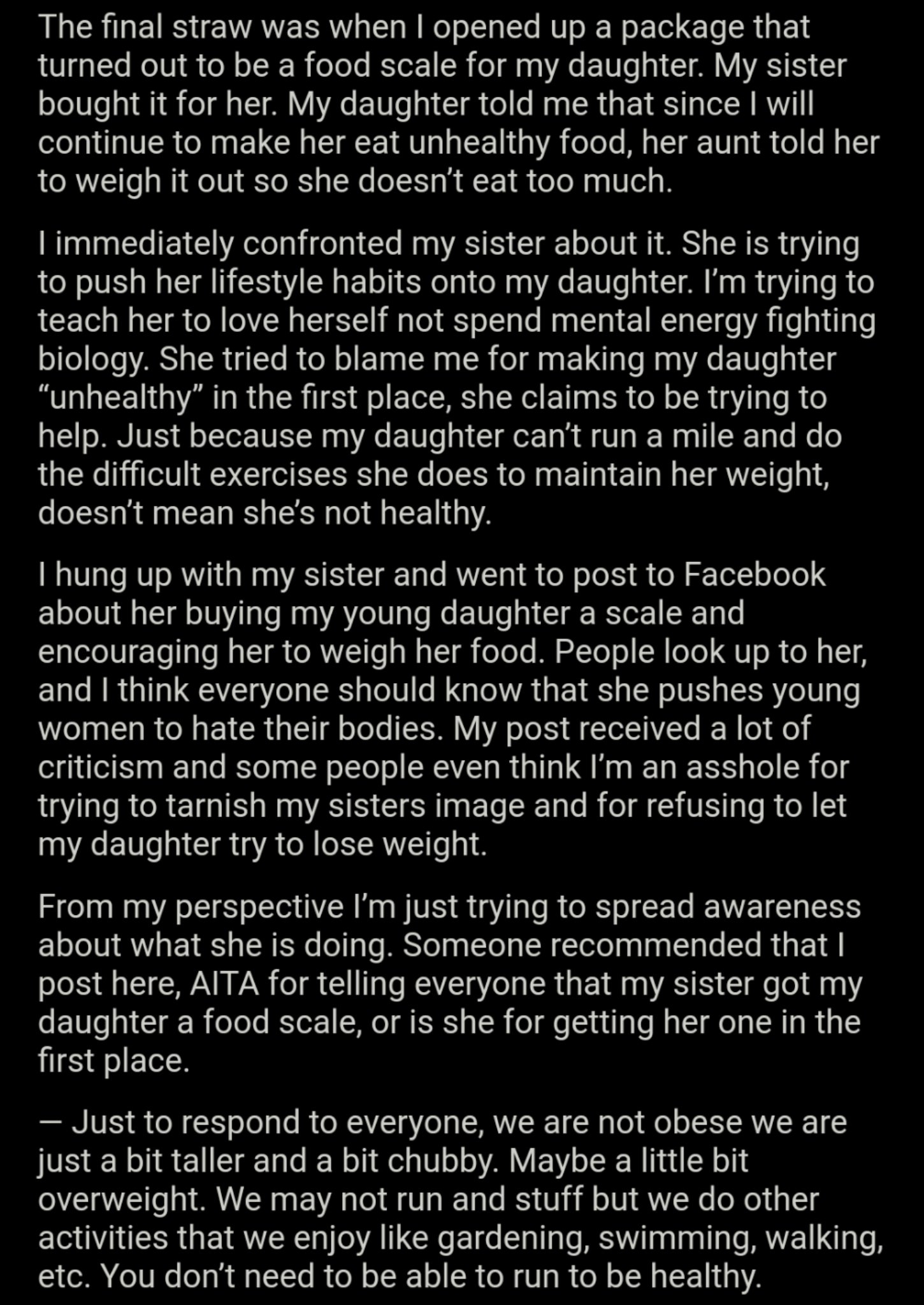 Am I The Asshole On Twitter Cw Weight Food Issues Aita For Calling Out My Sister After She Bought My Daughter A Food Scale Https T Co Wdltrta4di Https T Co 0epq2fvqyo